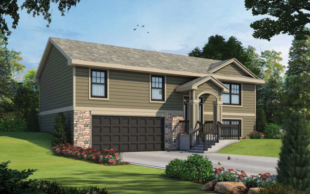 Split-Entry Design. Generally focused more on affordability, split-entry designs can be the least expensive to build. For the Dane Mills (plan #35084), costs are reduced because the garage occupies what would have been much of the basement.