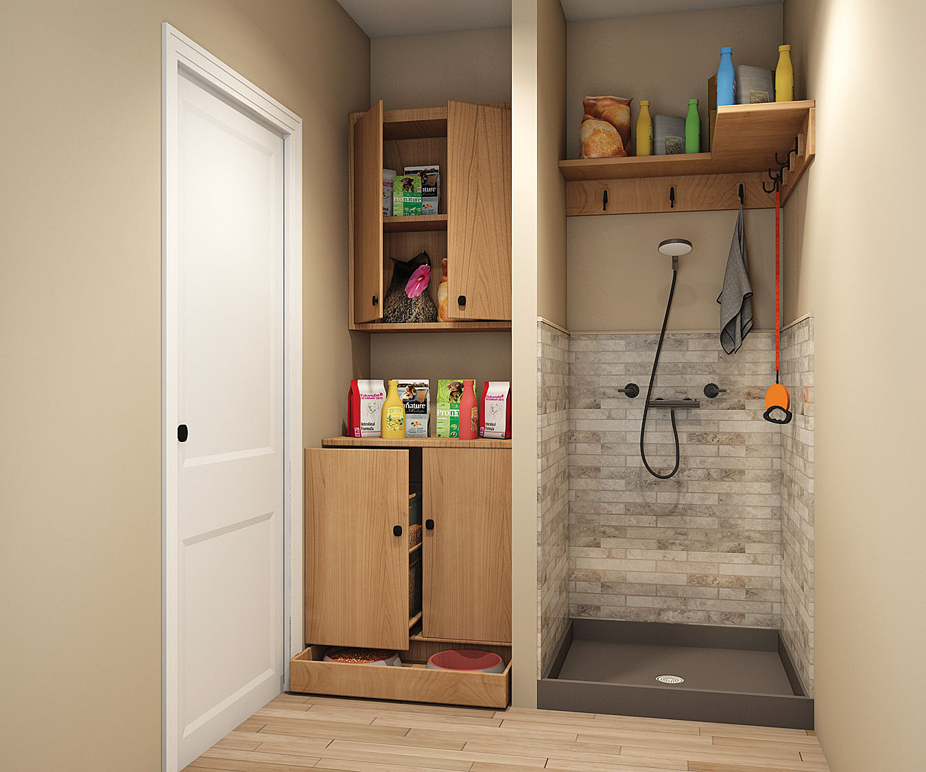 Better address the needs of your pets – a space for kennels, feeding, storage, and even washing.