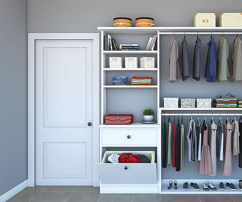 Incorporated into your closet, bedroom, or bathroom cabinetry as a tilt-out or pull-out drawer.